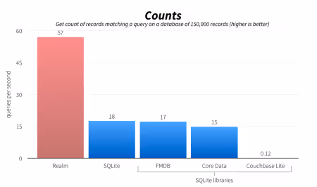 Usually, compact code is associated with higher-level languages (like Ruby & Python) that lose in performance what they gain in simplicity. But that leads one to Realm’s second big advantage.