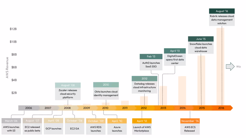 In terms of cloud, there were substantial returns in the end, but with the exception of Zscaler offering cloud security and Okta cracking cloud identity, the companies that provided the biggest outcomes did not really get started until 5+ years after the launch of AWS. In order for the market to understand the value proposition of a company like Snowflake, a data warehouse that could decouple cloud storage and compute, or DigitalOcean, a more abstracted and developer friendly cloud platform, patterns needed to be uncovered, and buyers needed to reach a certain level of maturity and awareness. And let us not forget Wiz, a company that is shaping up to be one of the biggest cloud infrastructure outcomes yet that was not even founded until fourteen years after the launch of AWS.