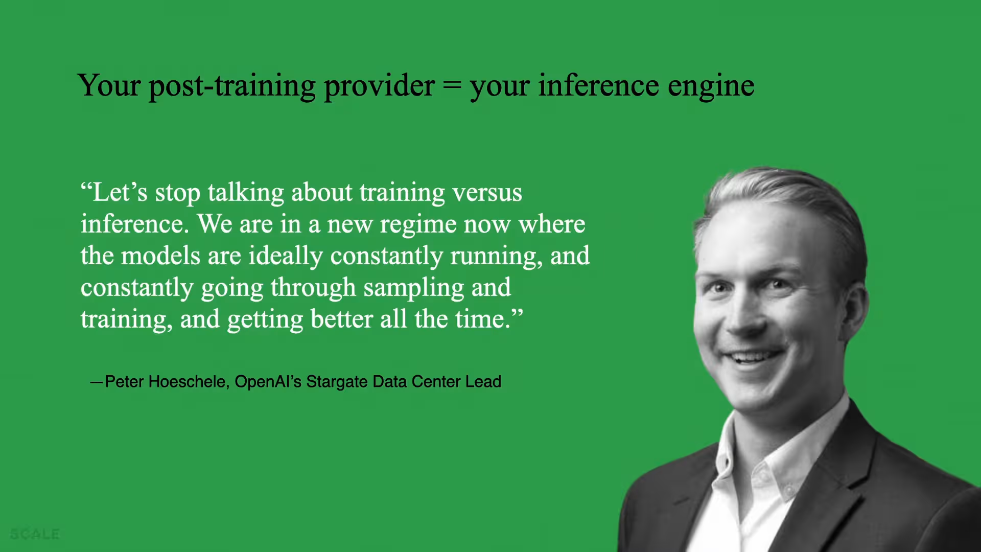 To quote OpenAI’s lead on Stargate, we need to stop talking about training versus inference. Models are now constantly going through sampling and training to improve. They are learning from experience. The Open AI team realizes that when they train a model and then they post train it, they do some inference, then they post train it more, and then they do more inference. Then when they post train two different models and do inference on both, they’re routing traffic to all of these and post-training and inference get intertwined, at least in the user experience.