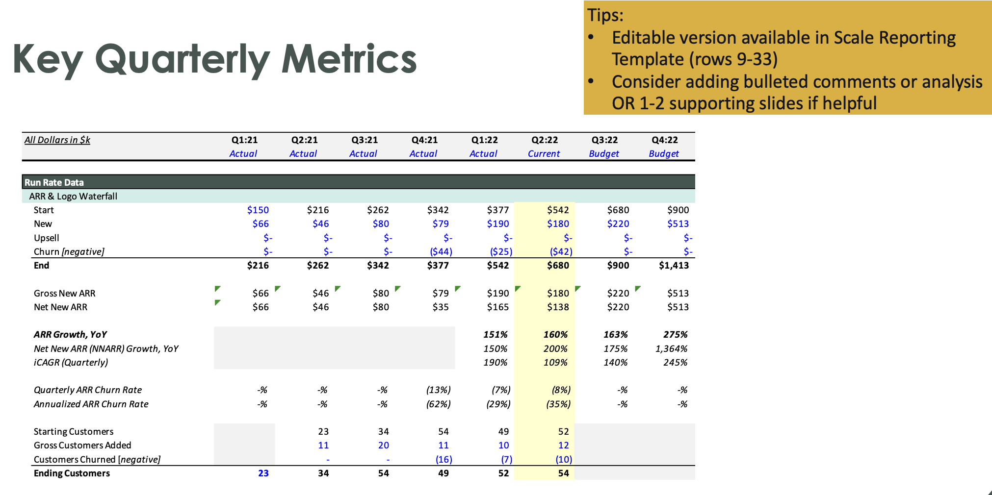 - The deck will change as you grow. As the organization grows beyond $1mm, additional slides may be helpful to provide a complete picture on the health of your business (see examples of optional slides).