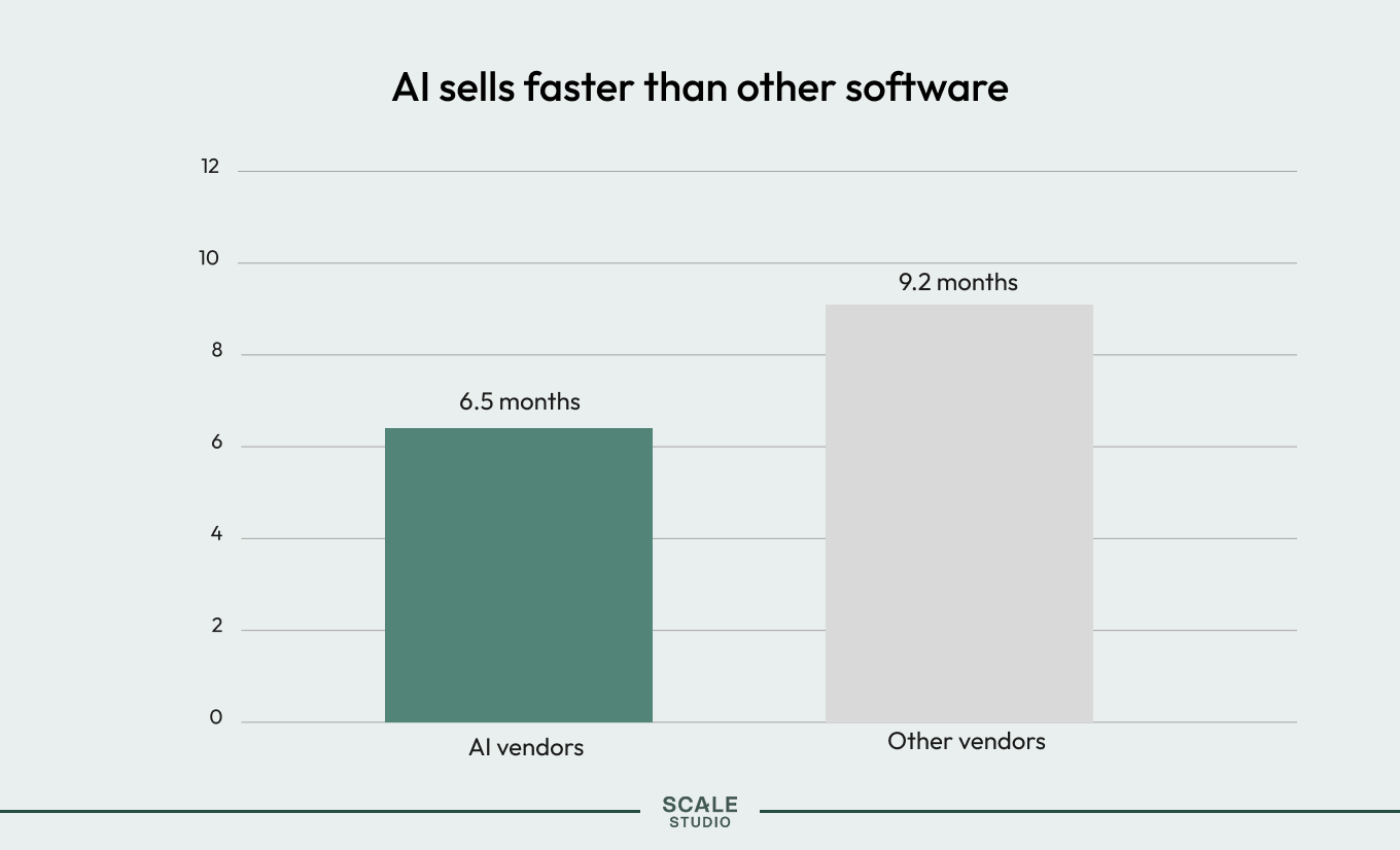 As executives continue to push for faster AI adoption across their workforce, businesses are scrambling to incorporate AI into their tech stacks.  The result of this is that AI vendors are selling their products almost 50% faster than vendors of other solutions, with average sales cycles a full quarter shorter than those of their non-AI counterparts.