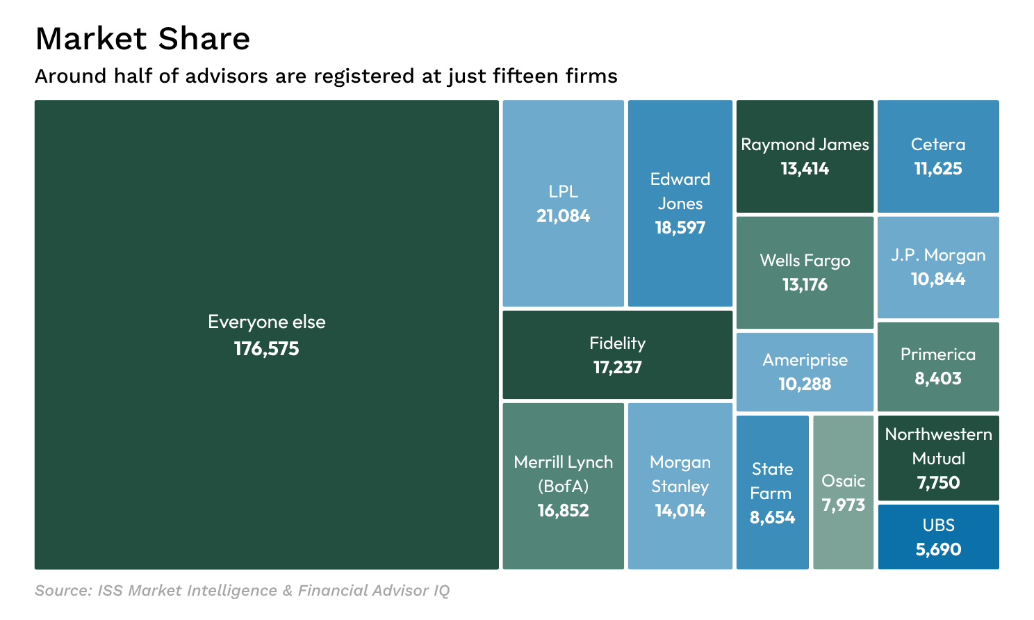 Many independent advisors operate as part of a larger platform such as LPL, who can provide the tech stack and back office support advisors need to run their business so they can focus on their clients. Today, most advisors work outside of traditional wirehouses, and independent platforms continue to grow market share.