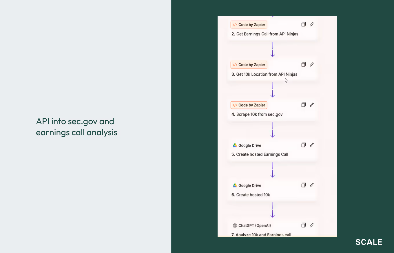 Blake likes using Zapier for projects like this because it’s such a mature product and offers features to control what happens in the event of a run failure. Zapier allows you to throttle the number of prompts you are sending to the LLMs and to automatically retry if the SEC.gov API doesn’t work, which sometimes happens.Blake set up the research models to: