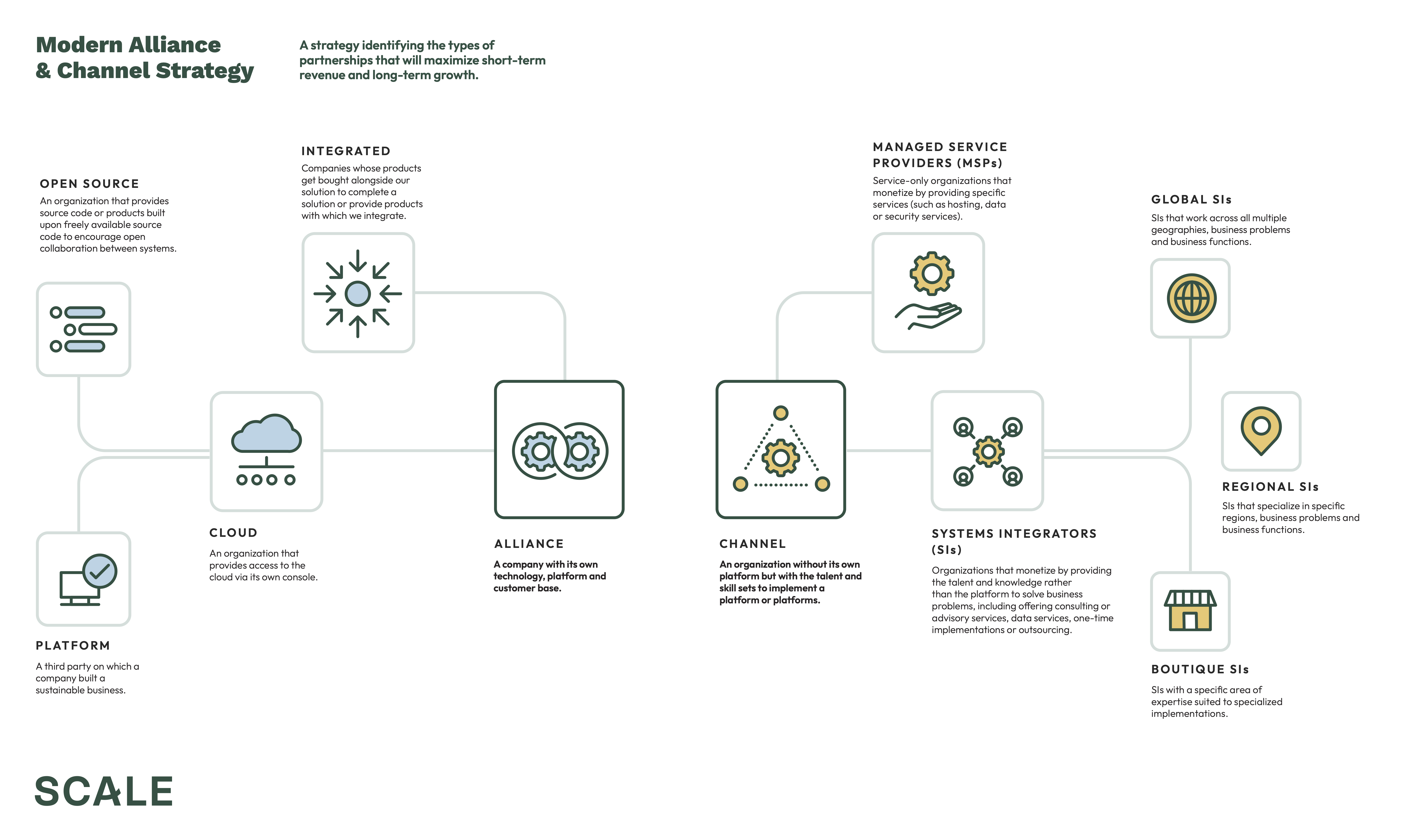 This one-page diagram, developed by Robert Koehler, defines different varieties of channel partnerships and alliances and shows how they relate to one another. Identifying the types of channel partnerships and alliances that will maximize your short-term revenue and long-term growth is the key step in building a successful strategy.